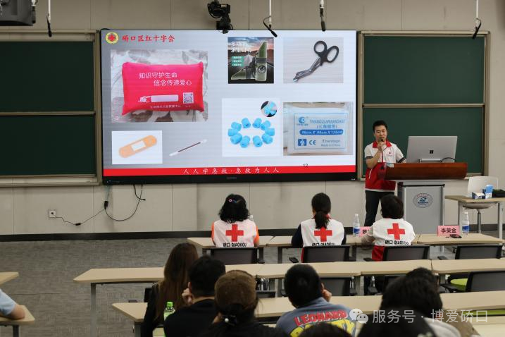 本次专题课堂由硚口区红十字会应急救护师资团队现场授课。课程伊始,高级讲师李荣金向大家介绍了红十字运动的起源与发展、三救三献的相关内容以及现场救护的基本原则。随后,团队结合日常救护的场景与特点,重点拆解海姆立克手法、心肺复苏操作及自动体外除颤器(AED)使用方法,通过理论讲解与动作示范,确保学员精准掌握急救要点。